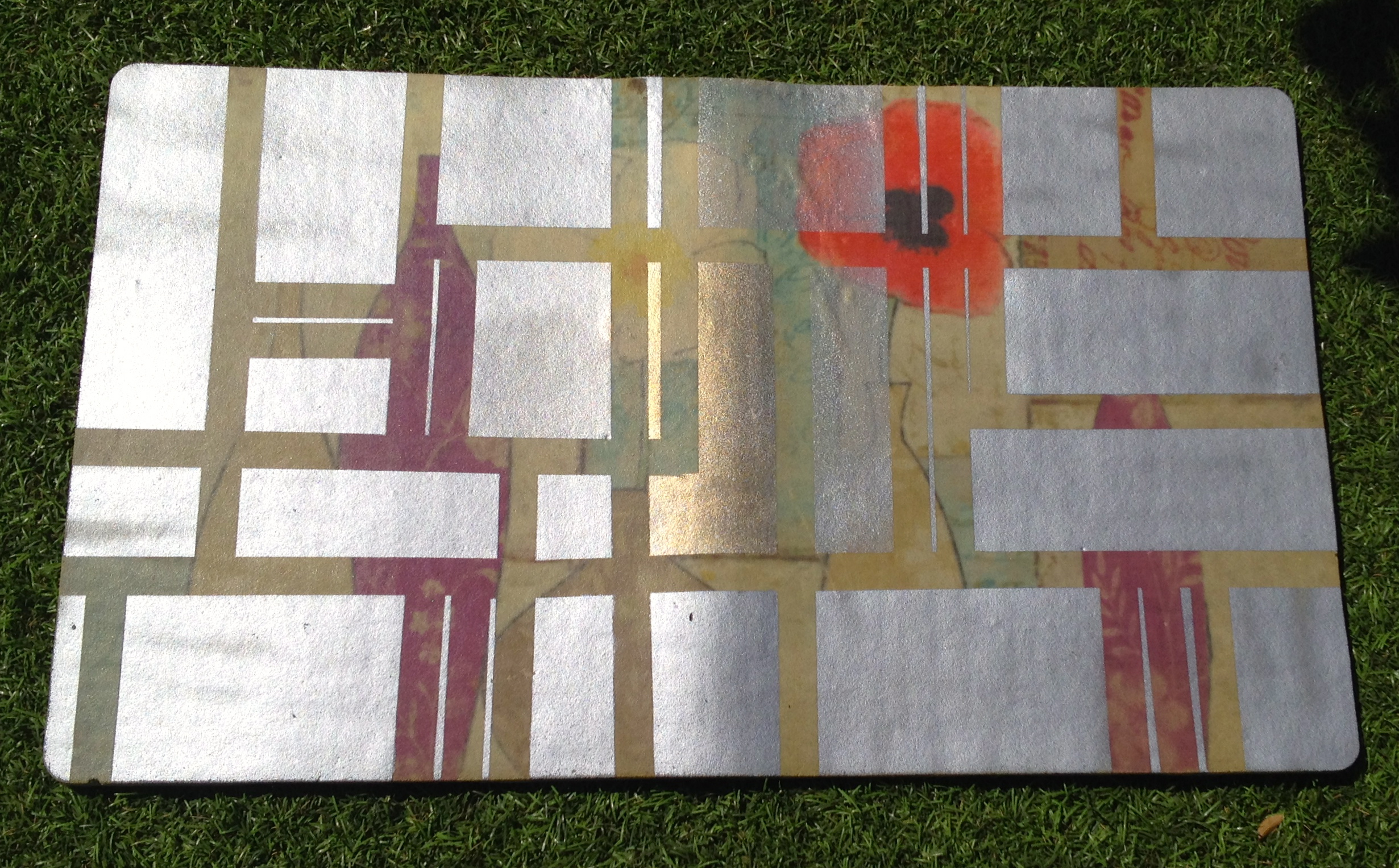 Secondly, this is my first upcycled project and  can’t wait to share with you all. When it started I wasn’t positive and didn’t want to take pictures. But then, what if it turns out good!!!  I am glad I did take the pictures. Image So, I have this not so pretty looking kitchen mat that is lying around and unattended from very long time.You must be wondering why do I have to spray paint or do anything to make it look pretty!! IMG_3314 Trust me, it’s not as bright and colorful as it looks in the picture 😛