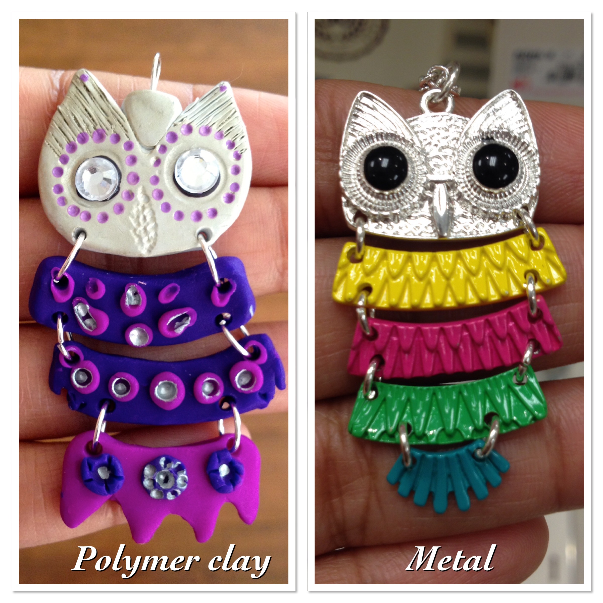 So, I can’t wait to share my trendy owl pendant made of polymer clay. The inspiration is a metal pendant that has some cool colors and the best part is it matches most of my tops/tees.