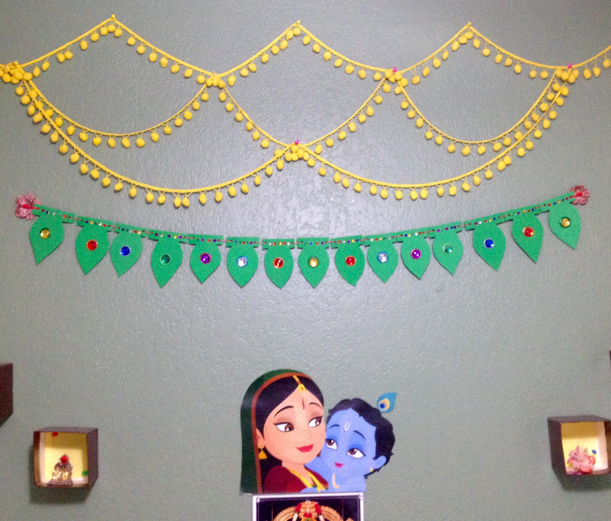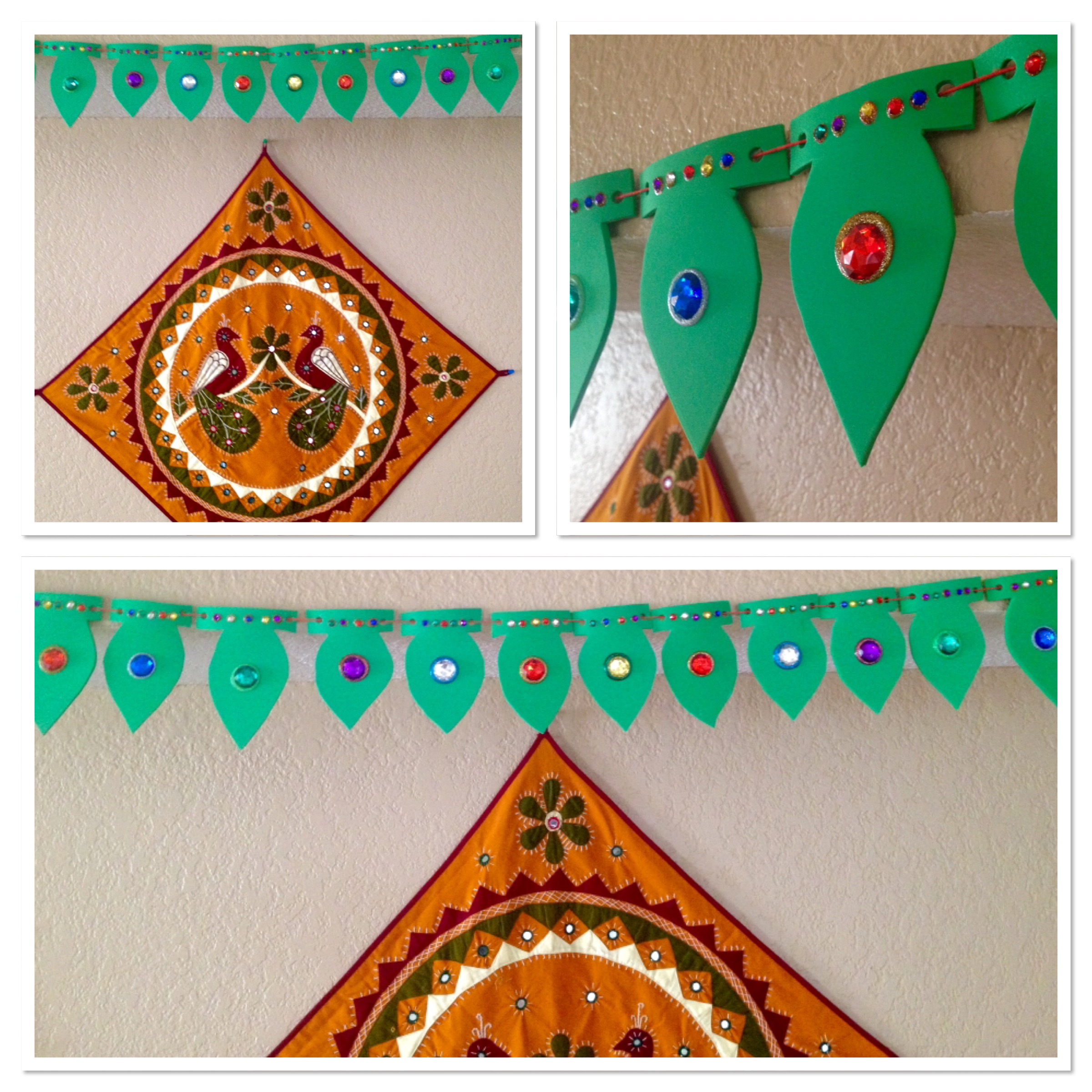 Some places it is really hard to find mango trees and if you want to keep the tradition and pass on to your kids, here is a D.I.Y Thoranam/Door Decorative 🙂