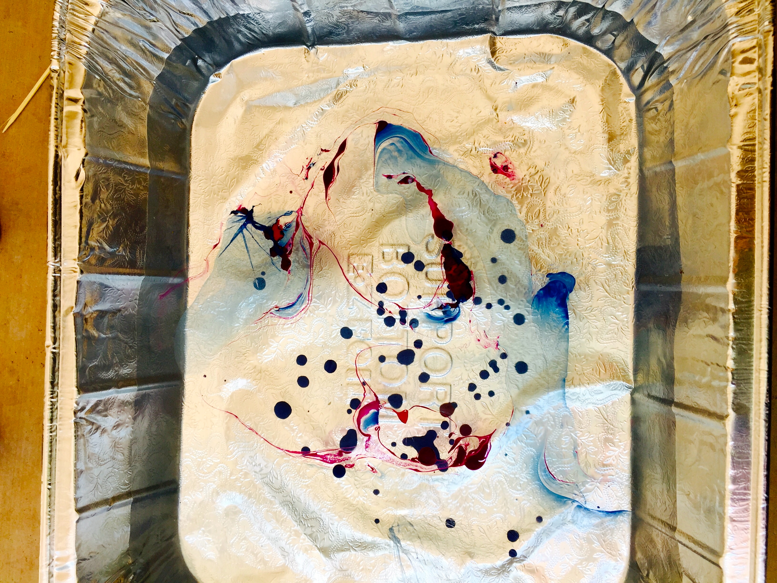 Step 2: Pour in the nail polish, let it spread on top of water and use a toothpick to blend the colors or give a nice texture.