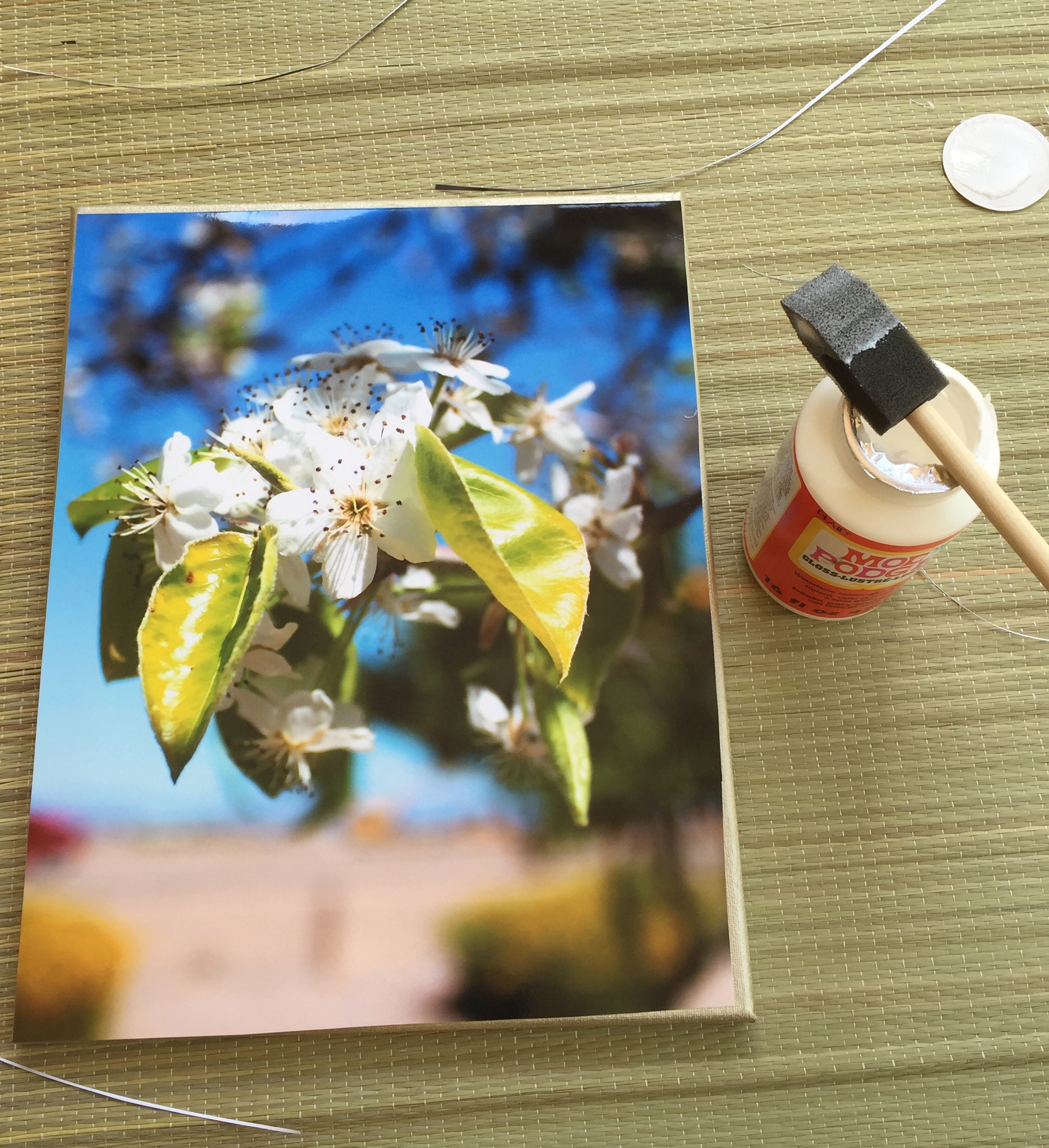 Step 4: Now add another layer of ModPodge over the photo. Make sure it is evenly covered and do not panic it dries clear.
