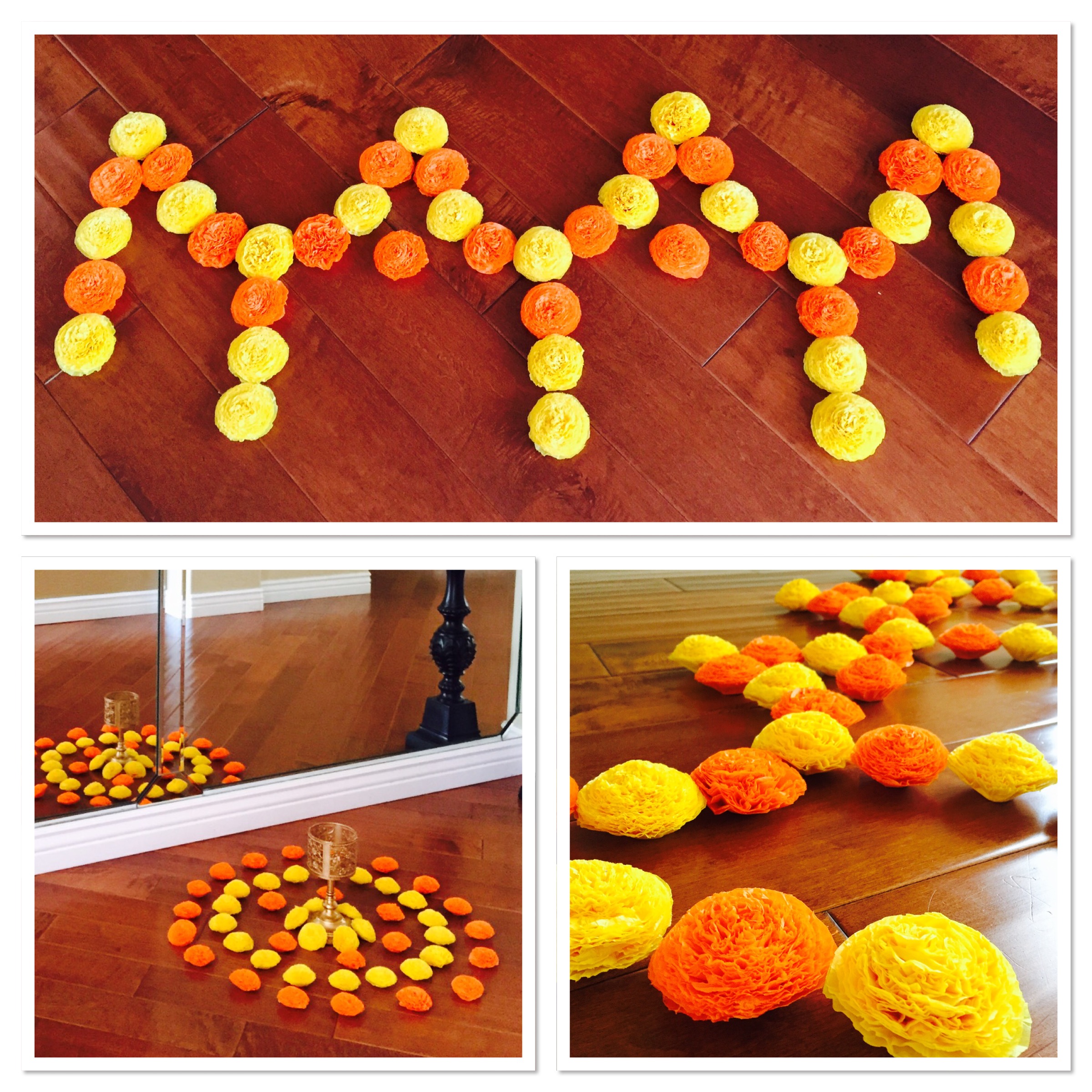 You can make centerpieces, garlands, door decorations for Indian festivals, stick them on wall with painters tape or even lay them on floor with some candles.
