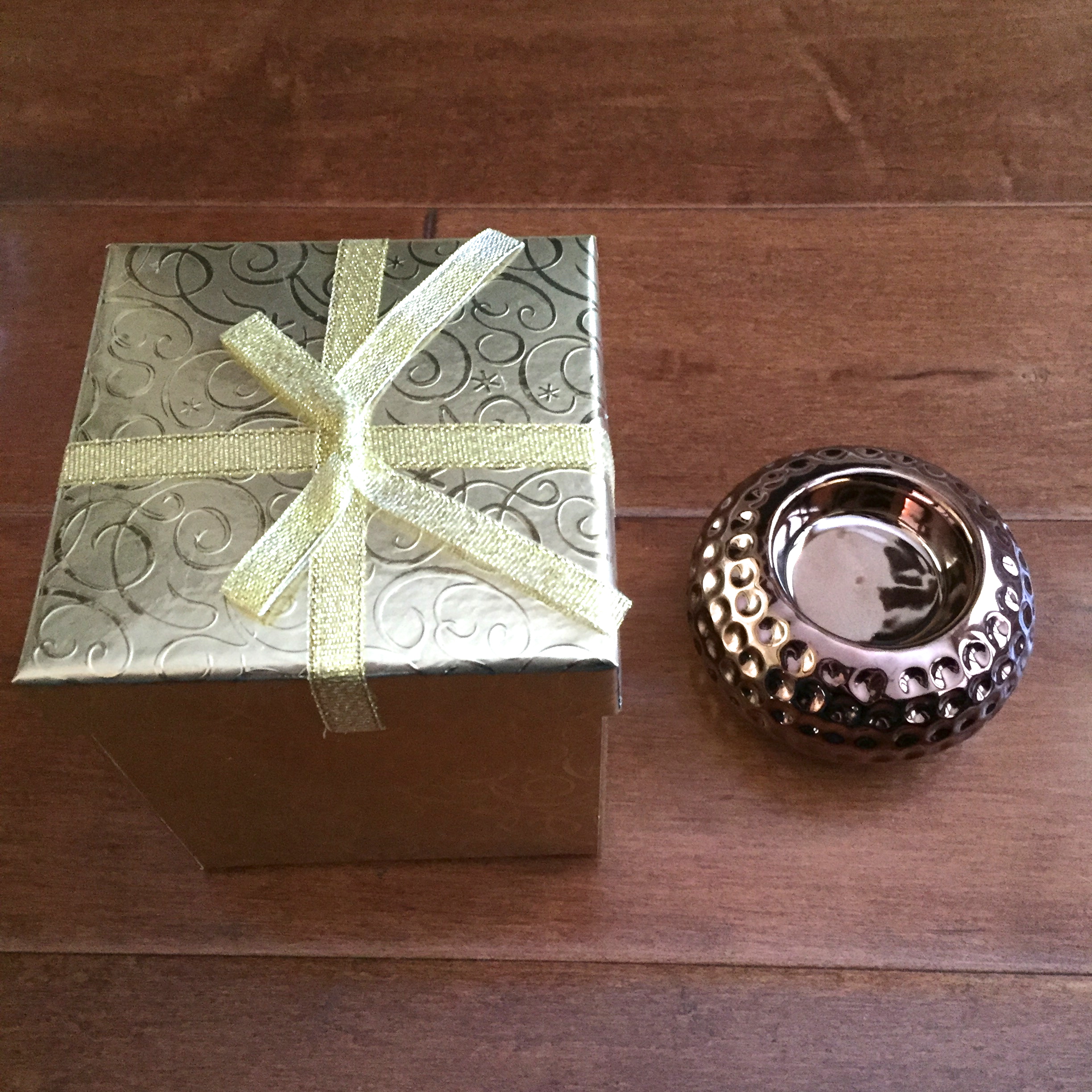 Use a fancy box or a favor box(this one from dollar tree) and a candle holder. That’s it, you have absolutely pretty sweet and gift box ready 🙂