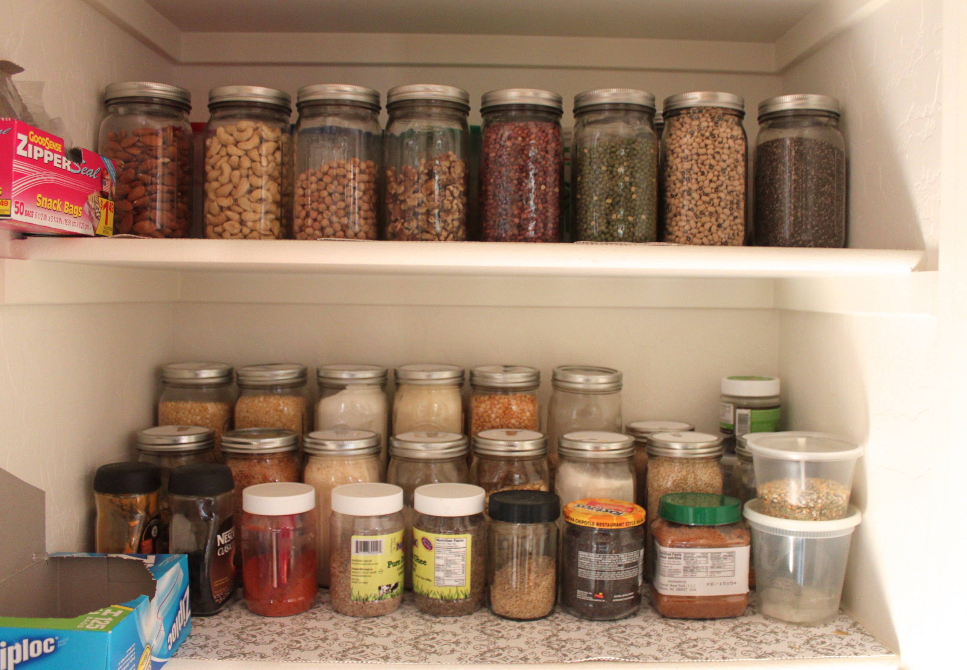If you are working on kitchen organization – mason jars are perfect for you! They come in multiple sizes and are great as storage containers.