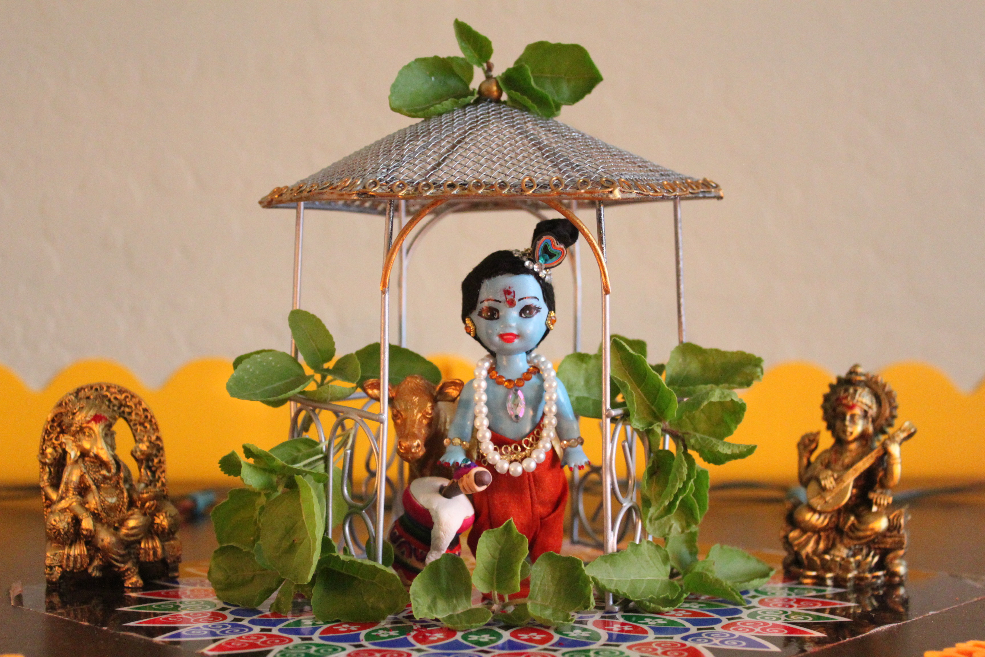 Hope you enjoyed the tutorial and lastly, here is a picture of my handmade Krishna in Tulasi vanam from last year (2015).
