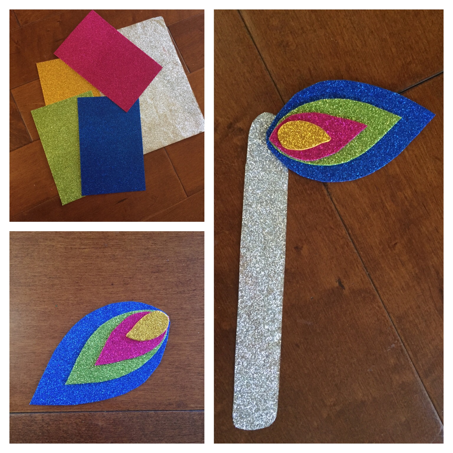 All I added was a flute with multiple color glitter foam sheets.