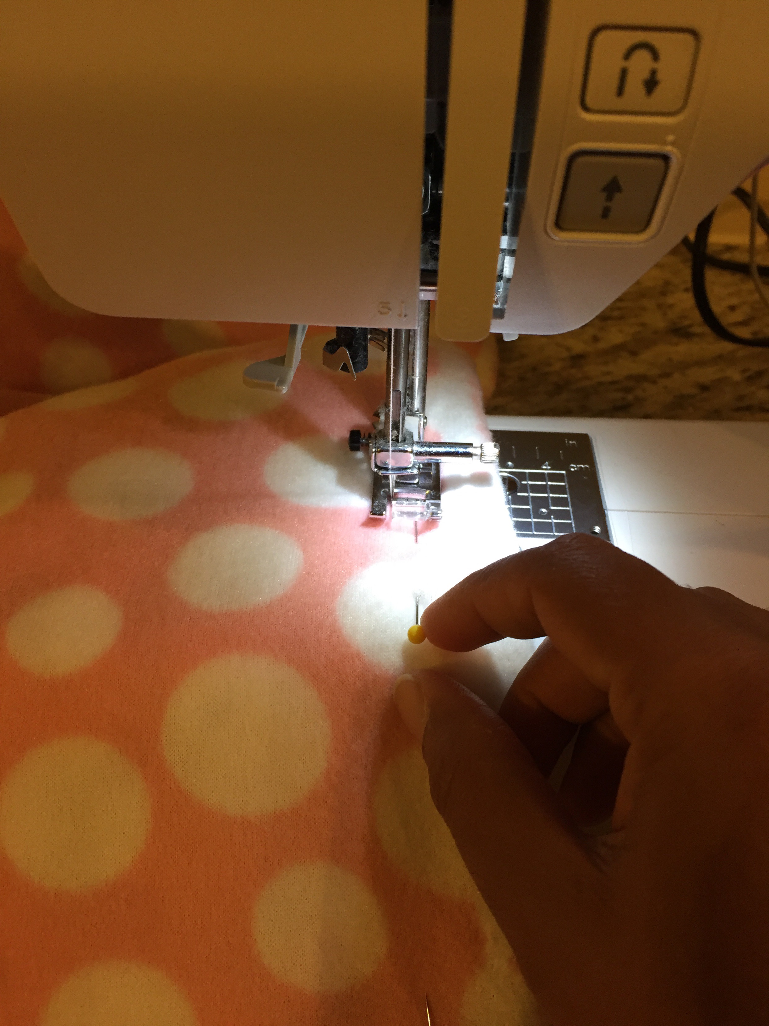 Start with a back stitch and sew using 1/2″ seam allowance.