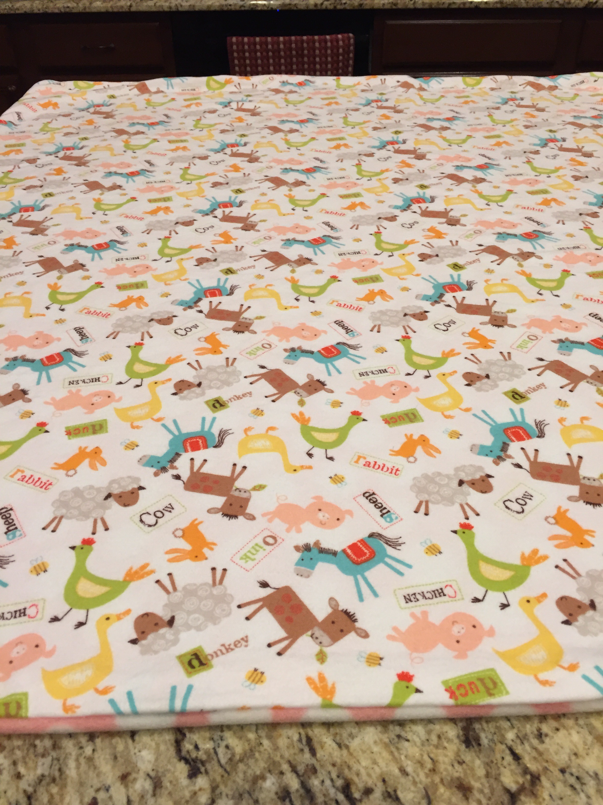 Sew  around the edges and you are done. The blanker is very soft and much thicker than the ones you find in stores.